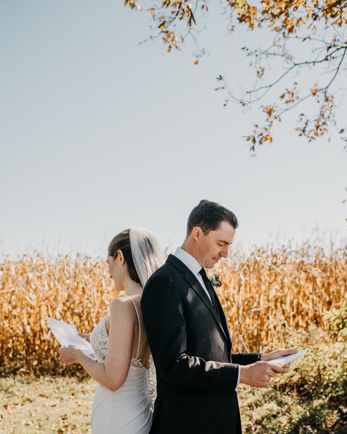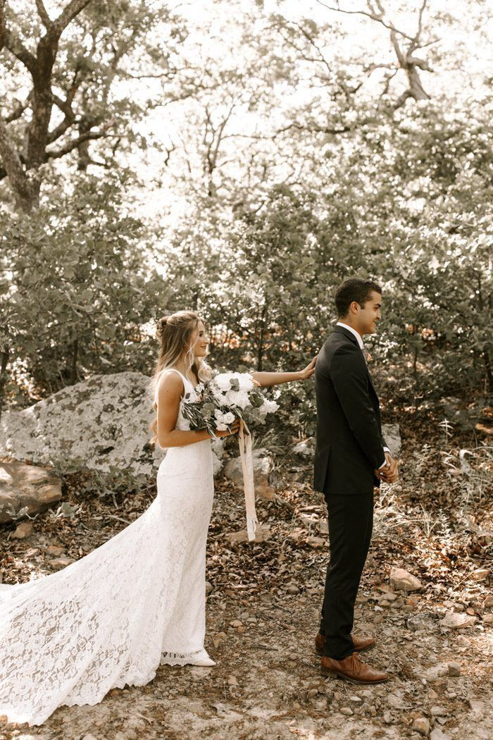 Add depth and reflection to your First Look by starting back-to-back and reading letters you've written for each other. It builds anticipation and gives space for quiet emotion before turning around.